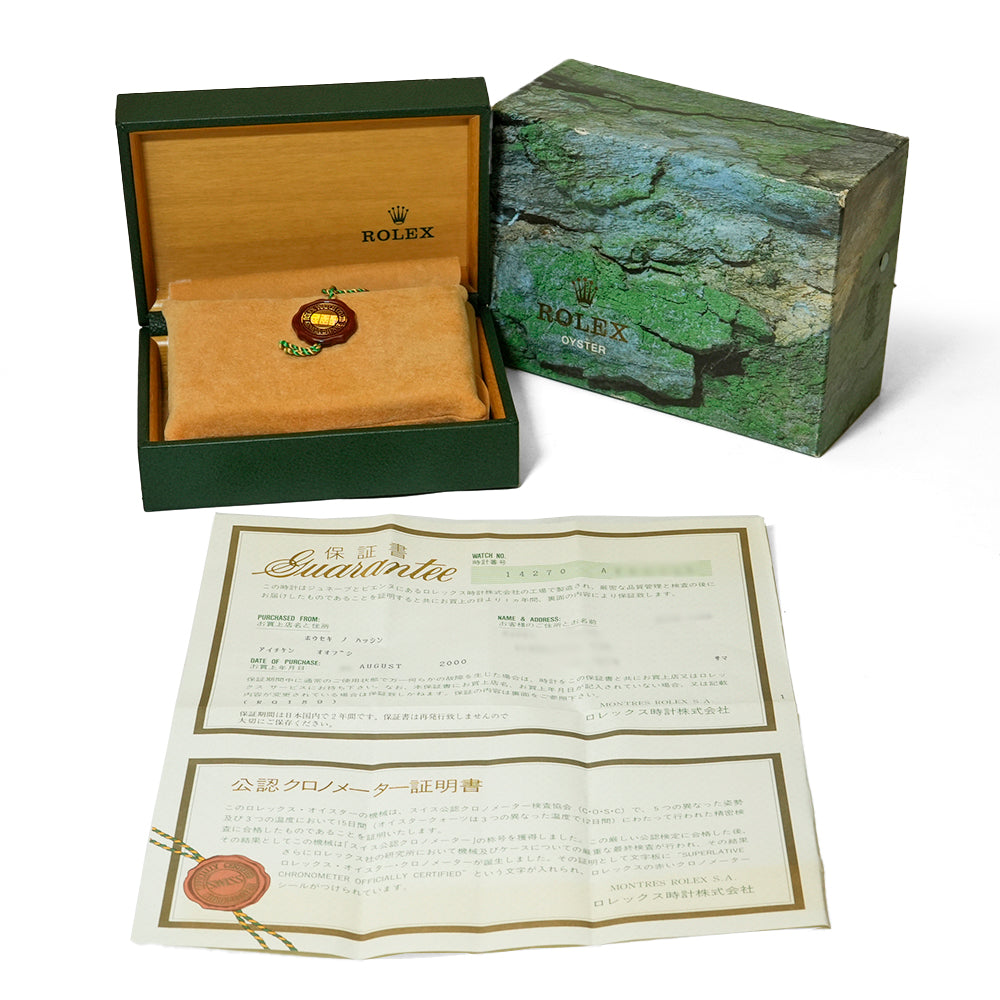 【国内正規USED品】 国内の正規店にて販売された個体です。 全体的に使用に伴う小傷がございますが、オリジナルのフォルムを維持するため、弊社入荷後はあえて仕上げをかけておりません。 1998年~1999年に製造をされた個体で、保証書は2000年となります。 バースイヤーウォッチ(生まれ年の時計)にもオススメなお品となります。 14270は2001年頃に生産が終了しており、本個体は2000年の保証書が付属する為、最終ロッドに近い個体となります。 ガラスに傷はございません。 ブレスレットの内径は最大約19cmです。(フルコマ)