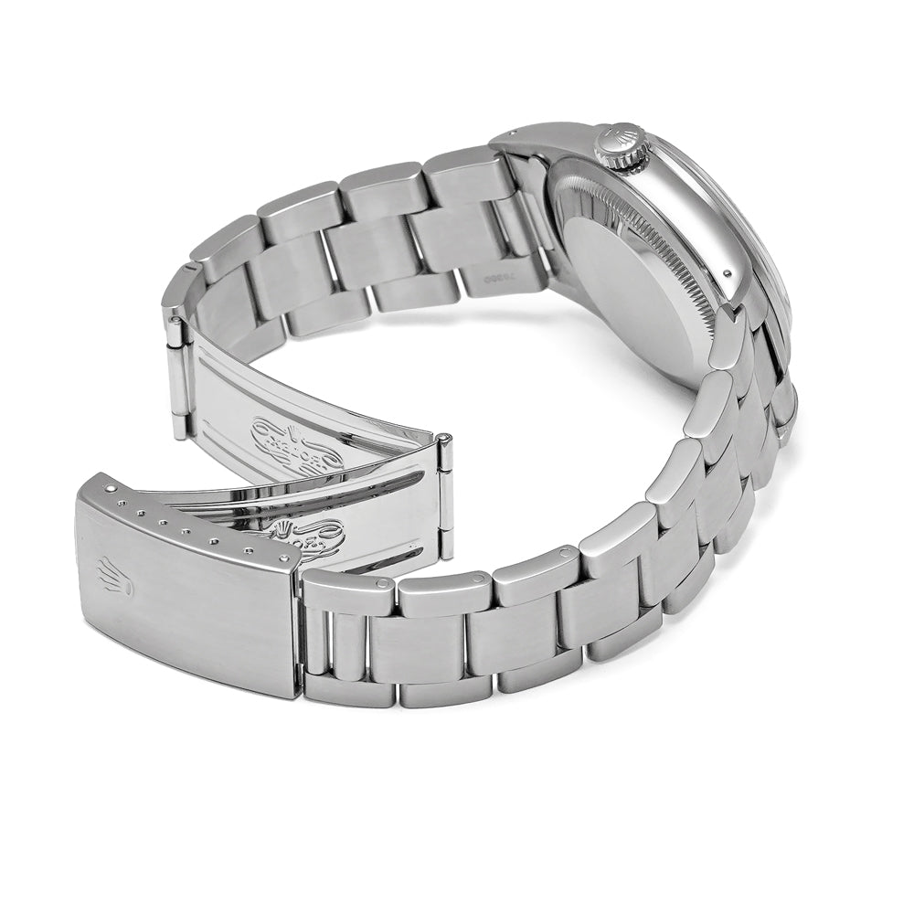 【USED品】 ダイヤルは良い具合にパティナしており、ヴィンテージのような味わいがあります。 ガラスに傷がございますが、使用時のダイヤルの視認性に影響はございません。 その他の部分に目立つような傷はなく、年式を考慮するとUSED品としては綺麗な状態です。 ブレスレットの内径は最大約18cmです。