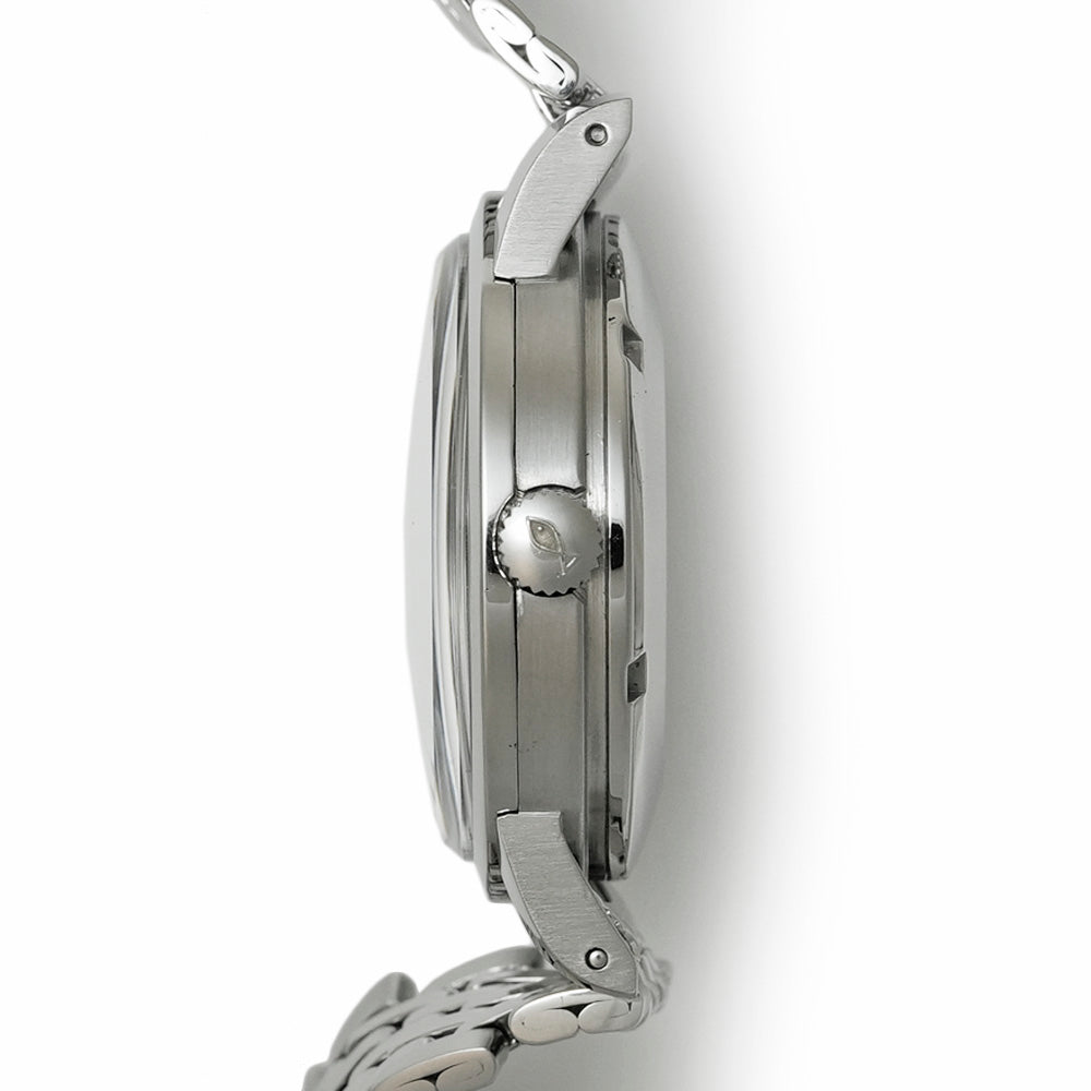 【ヴィンテージ/アンティーク品】 ダイヤルはオリジナルです。 非常に珍しい黒文字盤のインヂュニアです。 ブレスレットは人気のゲイフレアー社製が装着されています。 針は後期のパーツに交換されています。 日差:±60秒以内(※商品掲載時点でのタイムグラファーを用いた計測値です。) 純正パーツが入手困難な場合は、修理に必要なパーツを製作もしくは加工をして行う場合がございます。 詳細は在庫店舗までお問い合わせ下さい。 アンティーク/ヴィンテージ品の為、風防はプラスチックとなります。 ブレスレットの内径は最大約19cmです。