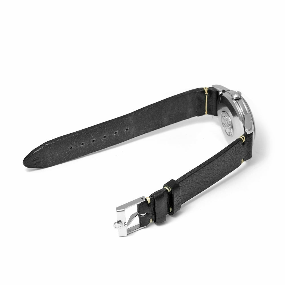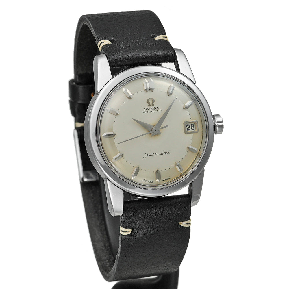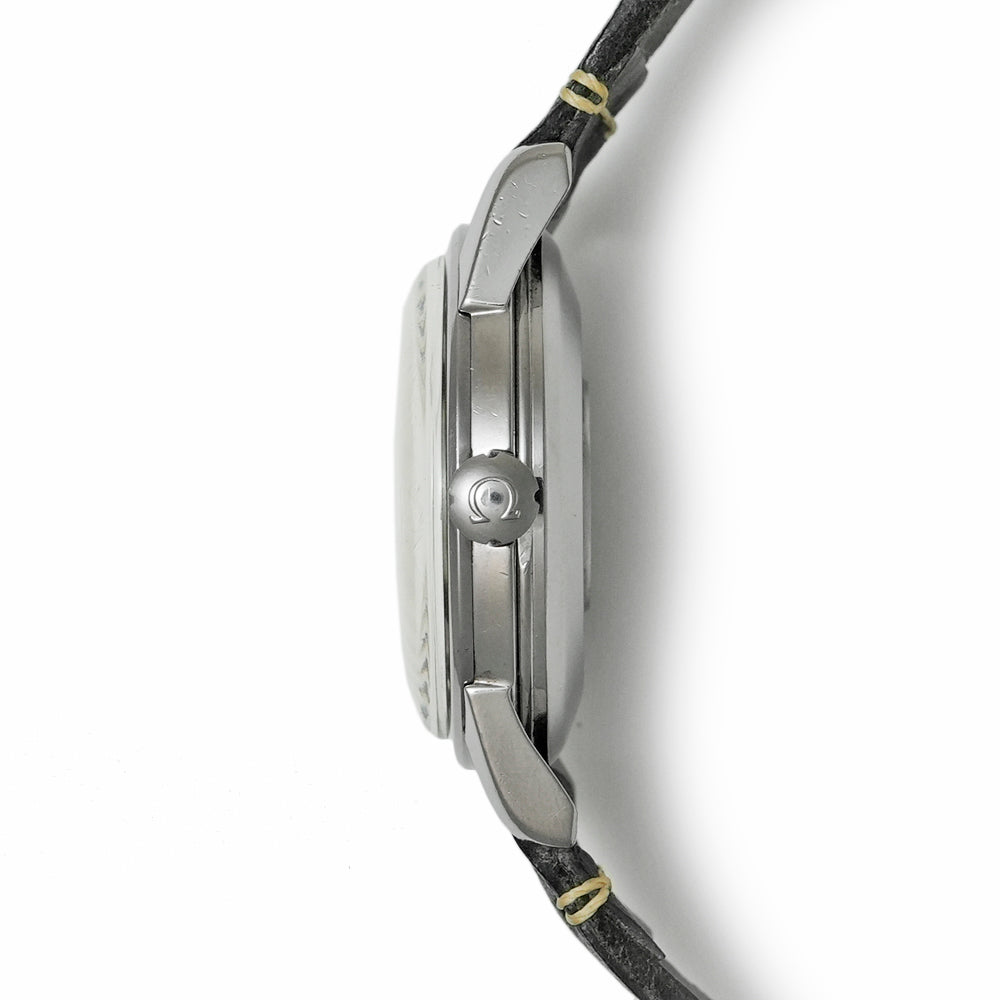 【ヴィンテージ/アンティーク品】 ダイヤルはオリジナルです。 クラシックな34mmケースに、わずかに膨らんだドーム型風防が柔らかな表情を添える、シンプルな3針+デイト表示。 信頼性の高い自動巻ムーブメント Cal.503 を搭載し、日常使いにも安心の使い心地を備えています。 立体的なインデックスと、光の角度で豊かな表情を見せるドーフィン針が、腕元に上品なヴィンテージの趣を演出。 現代の時計にはない温もりと風格を感じさせる、落ち着いた大人にふさわしい1本です。針やインデックスのデザインがシンプルで時間も読み取りやすく、初めてのヴィンテージウォッチとしても安心してお選びいただけます。 日差:±60秒以内(※商品掲載時点でのタイムグラファーを用いた計測値です。) 純正パーツが入手困難な場合は、修理に必要なパーツを製作もしくは加工をして行う場合がございます。 詳細は在庫店舗までお問い合わせ下さい。 アンティーク/ヴィンテージ品の為、風防はプラスチックとなります。 革ベルトは弊社入荷後に社外製の未使用品へと交換済みです。