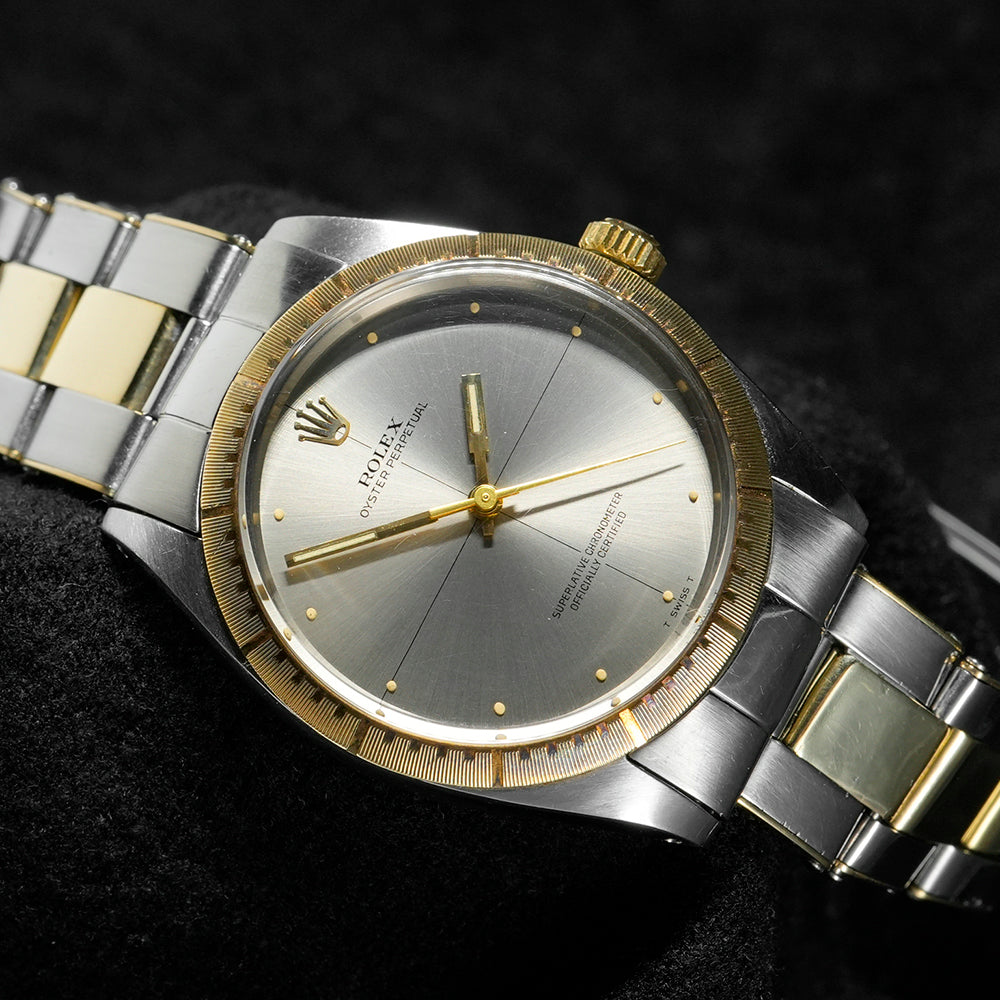 【ヴィンテージ/アンティーク品】 ブレスレットには年代相応の使用感がございます。ダイヤルはオリジナルです。 日差:±60秒以内(※商品掲載時点でのタイムグラファーを用いた計測値です。) 純正パーツが入手困難な場合は、修理に必要なパーツを製作もしくは加工をして行う場合がございます。 詳細は在庫店舗までお問い合わせ下さい。 アンティーク/ヴィンテージ品の為、風防はプラスチックとなります。 ブレスレット12時側と6時側の1コマ目のサイズが異なっております。 ブレスレットの内径は最大約17cmです。