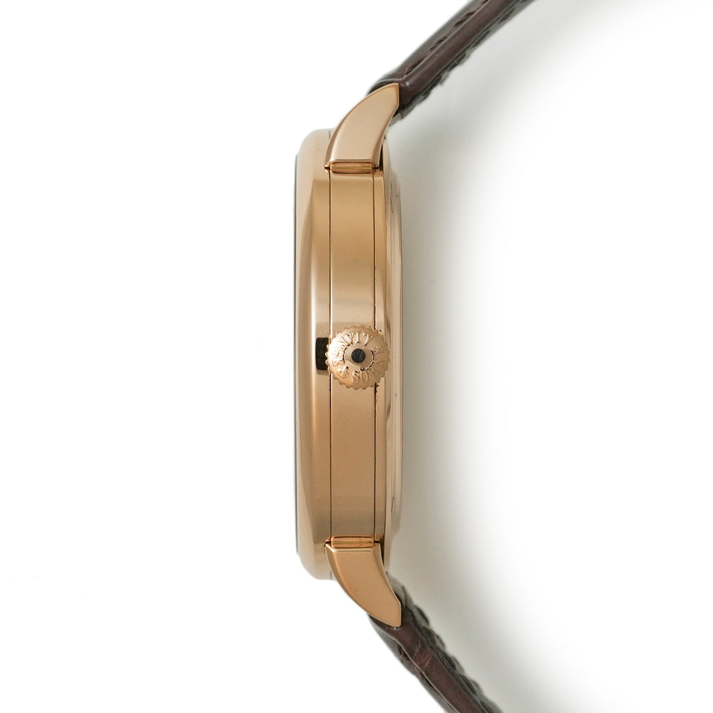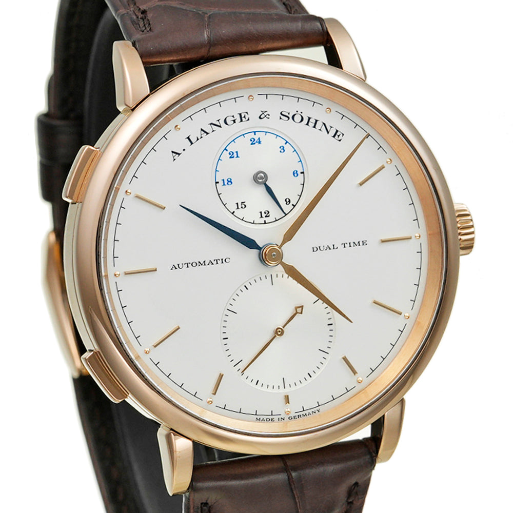 デュアルタイム表示でありながら、文字盤はすっきりとまとまっており、視認性の高さと上品な印象を両立しています。