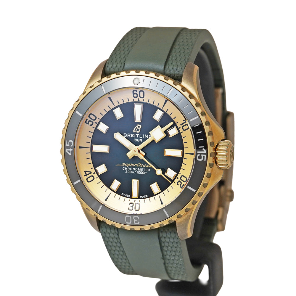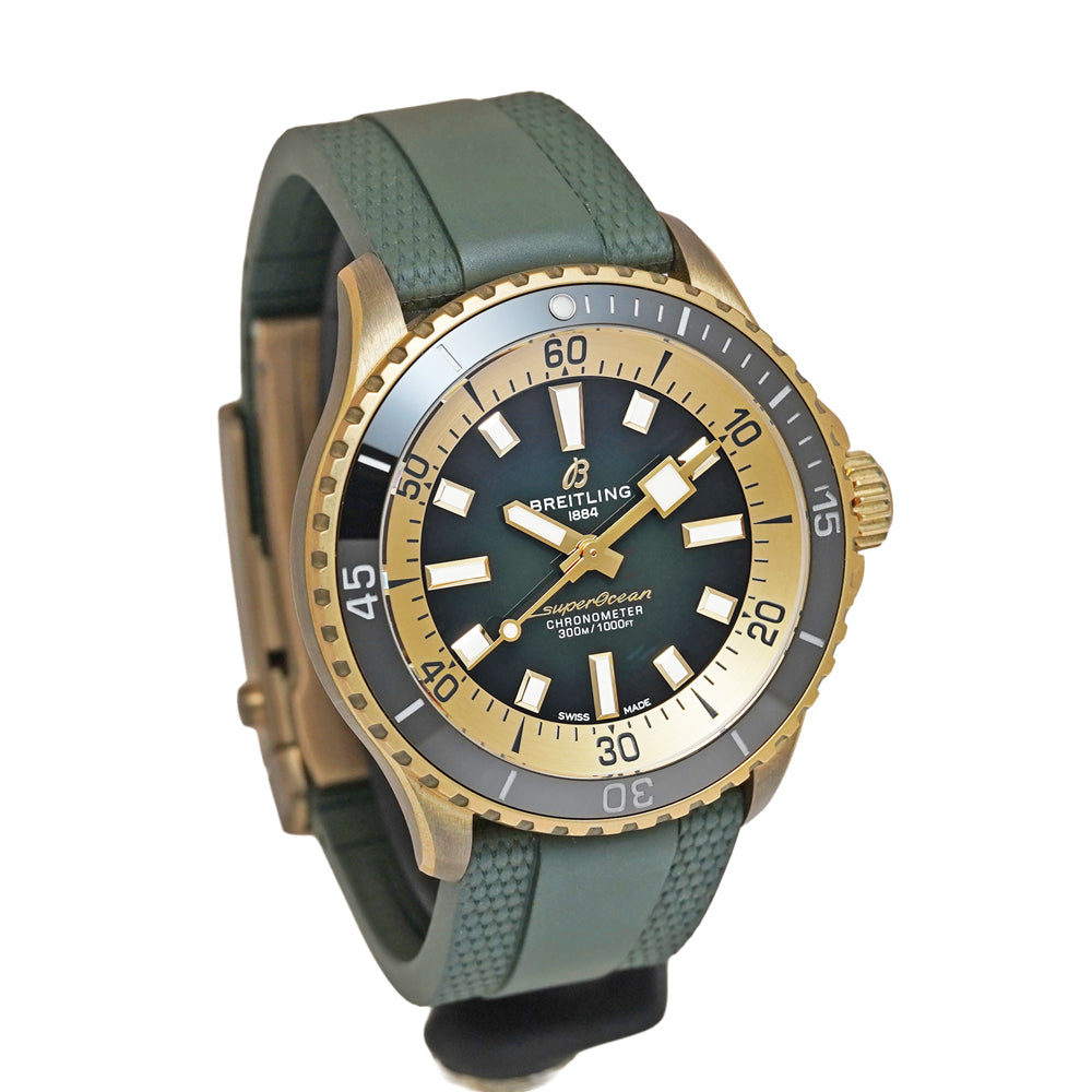 【USED品】 全体的に目立つような傷は無く、USED品としては綺麗な状態です。 ブロンズ特有の経年変化による味わいが楽しめるお品です。 ガラスに傷はございません。 ラバーベルトは純正で中古ですが、綺麗な状態です。 ブレスレットの内径は最大約17cmです。