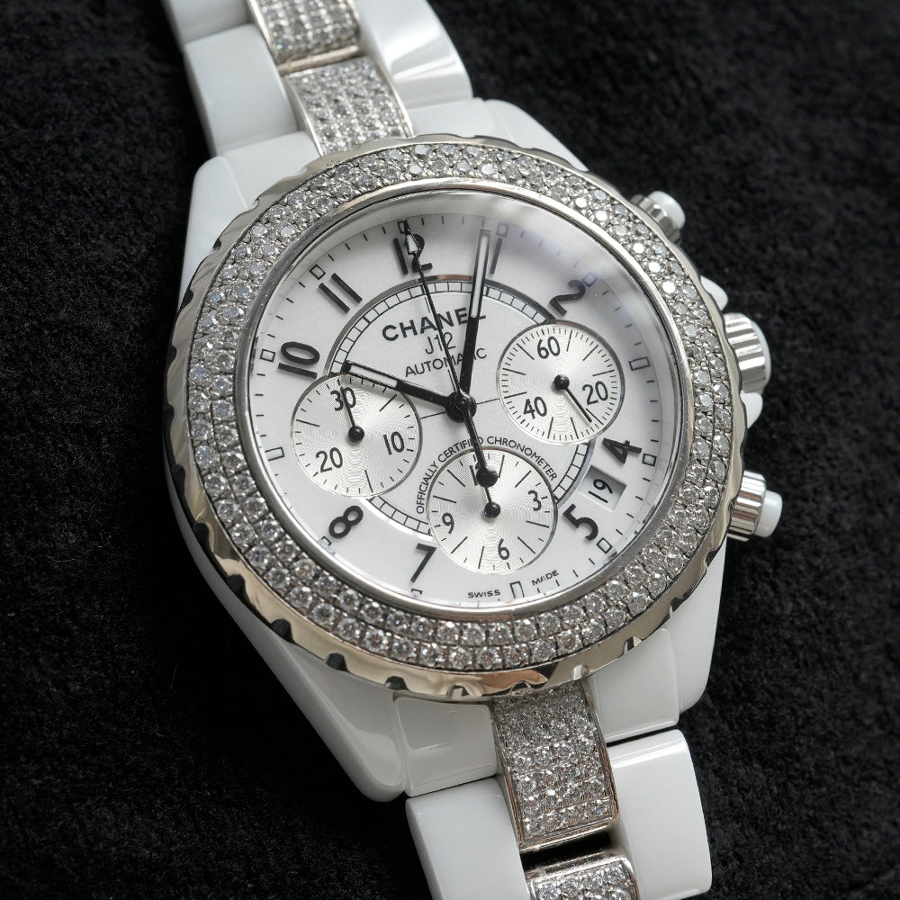 【USED品】 ベゼルのミラー部分にわずかな小傷はございます。 ブレスレットに使用感がございます。 ガラスは全体的にわずかな小傷がございますが、肉眼ではそれほど目立ちません。 ブレスレットの内径は最大約16.5cmです。