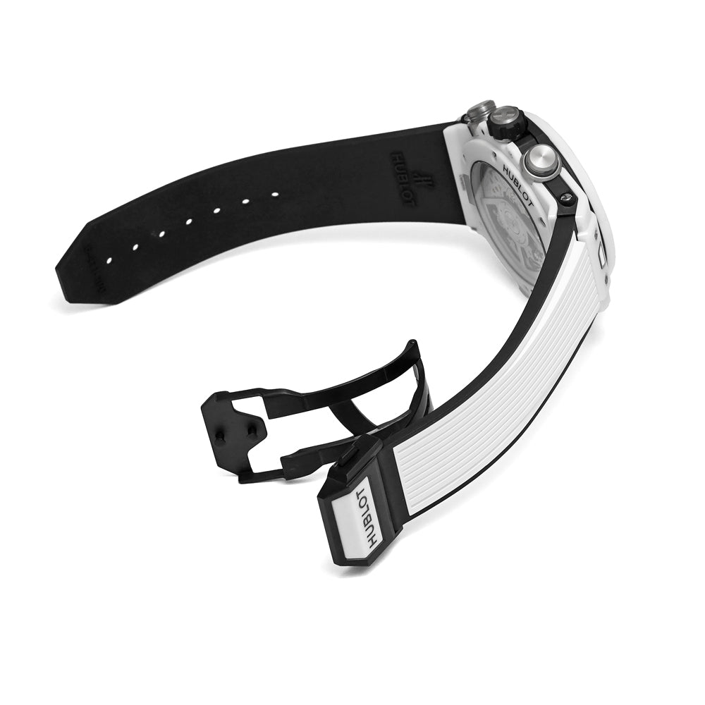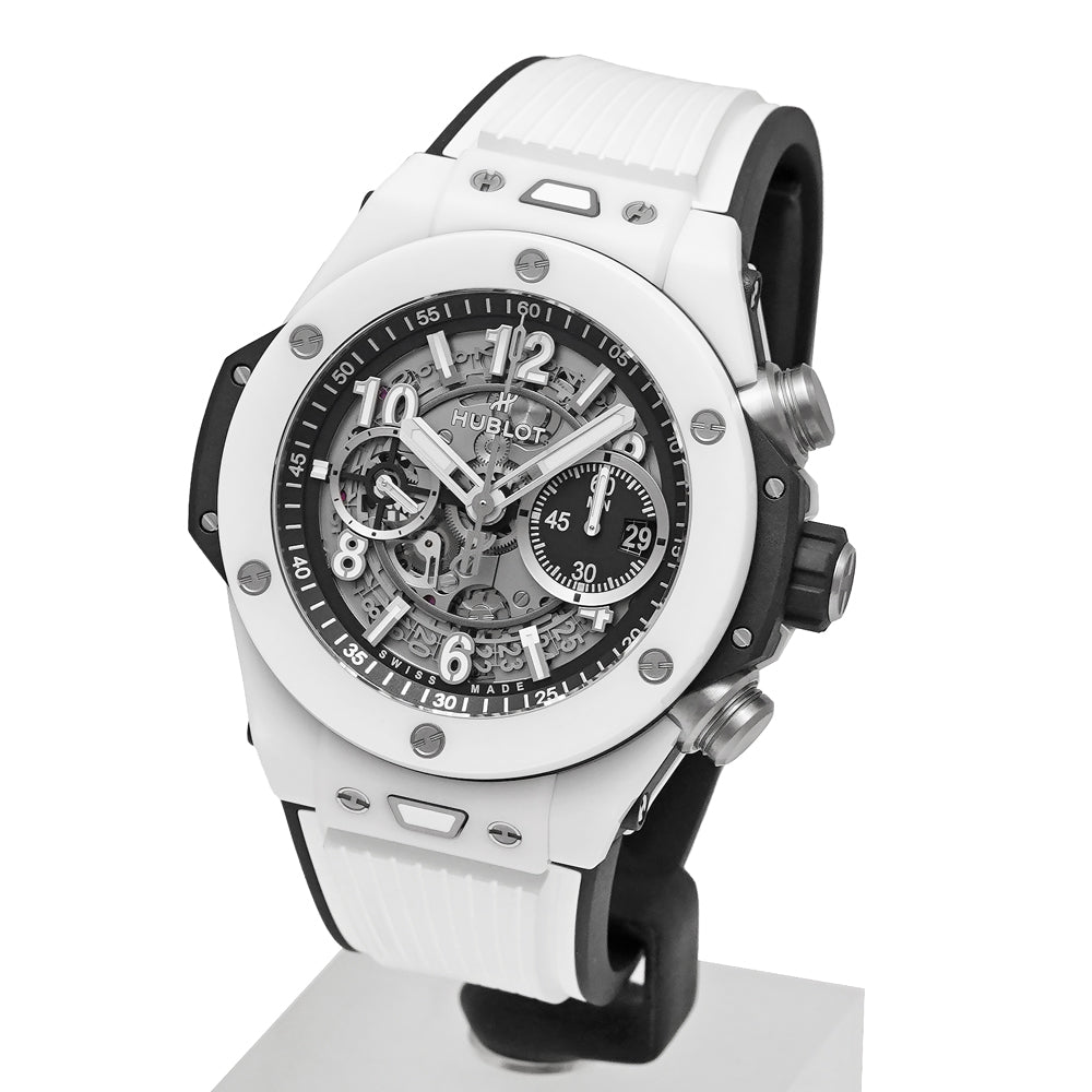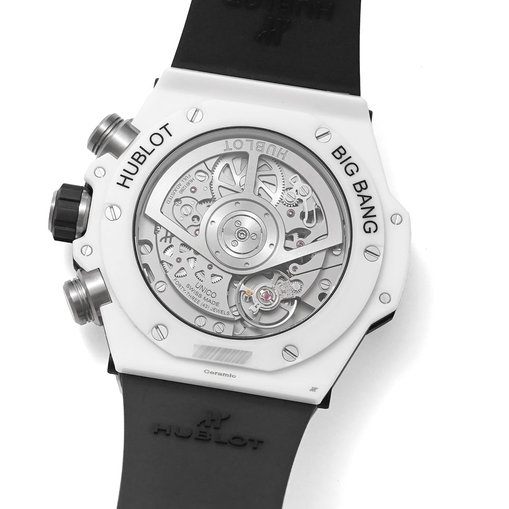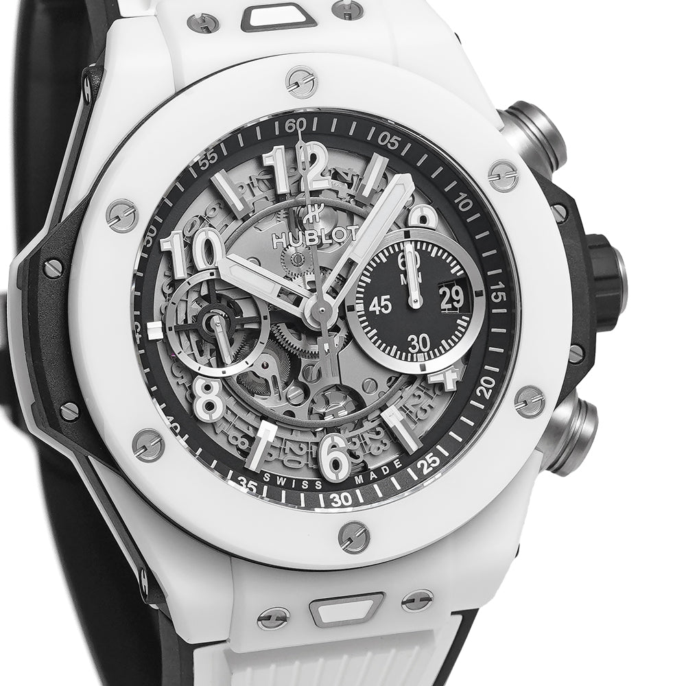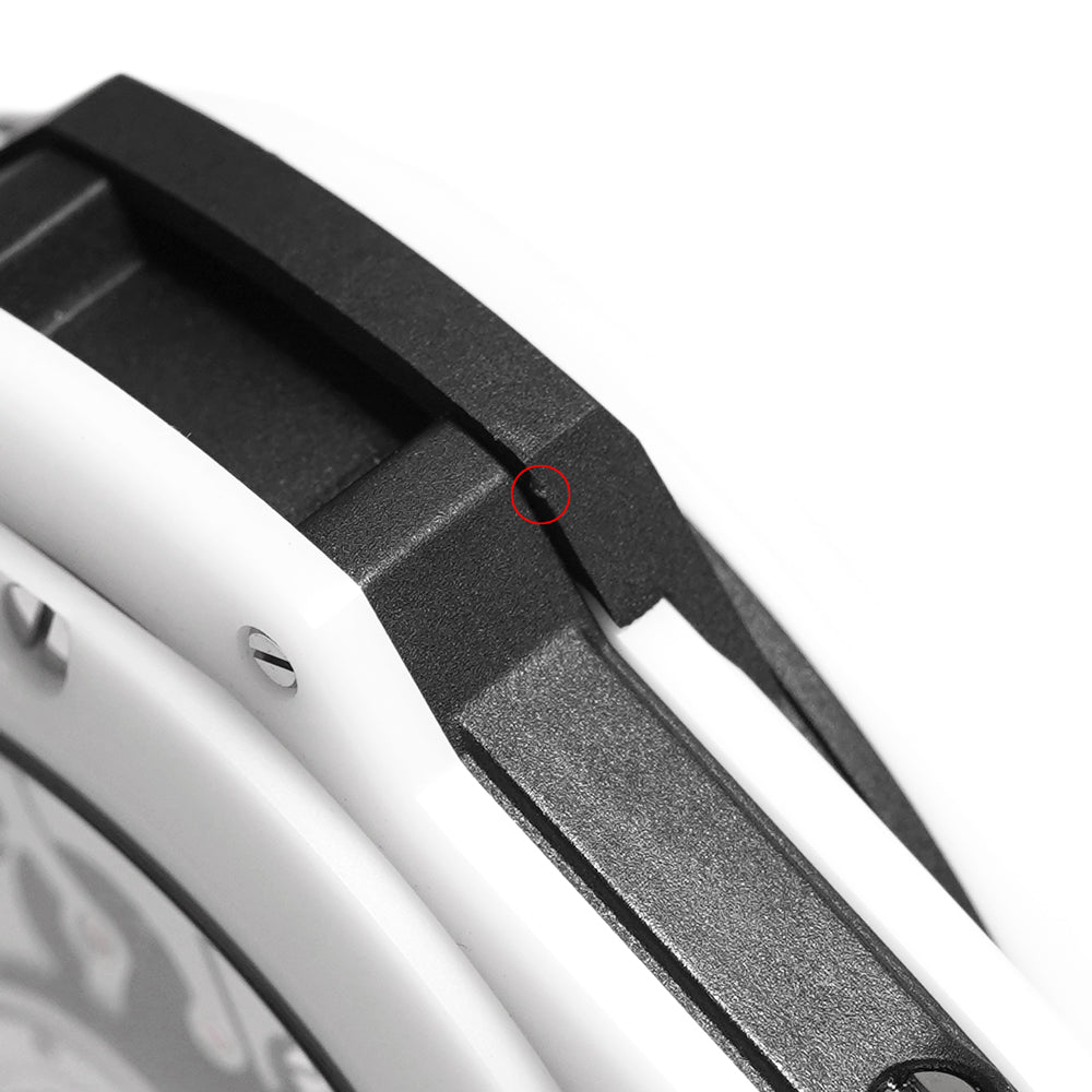 【USED品】 全体的に目立つような傷はなく、USED品としては綺麗な状態です。 ケースサイドに数か所わずかな傷がございますが、注視しなければわからない程度です。 純白のハイテクセラミックが圧倒的な存在感を放ちます。爽やかさと力強さを兼ね備えた一本です。 ガラスに傷はございません。 ラバーベルトは純正で中古ですが、綺麗な状態です。