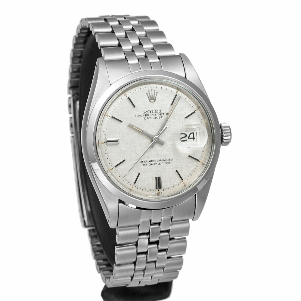 【ヴィンテージ/アンティーク品】 ダイヤルはオリジナルです。 1972年ごろに生産されたデイトジャストです。 ダイヤルは独特なパターンが描かれており、通称モザイクダイヤルと呼ばれています。 ベゼルはスムースベゼル、ブレスレットは巻きのジュビリーブレスレット仕様です。 一味違ったデザインのデイトジャストをお探しの方にはオススメな玄人向け商品となります。 日差:±60秒以内(※商品掲載時点でのタイムグラファーを用いた計測値です。) 純正パーツが入手困難な場合は、修理に必要なパーツを製作もしくは加工をして行う場合がございます。 詳細は在庫店舗までお問い合わせ下さい。 アンティーク/ヴィンテージ品の為、風防はプラスチックとなります。 ブレスレットの内径は最大約18.5cmです。