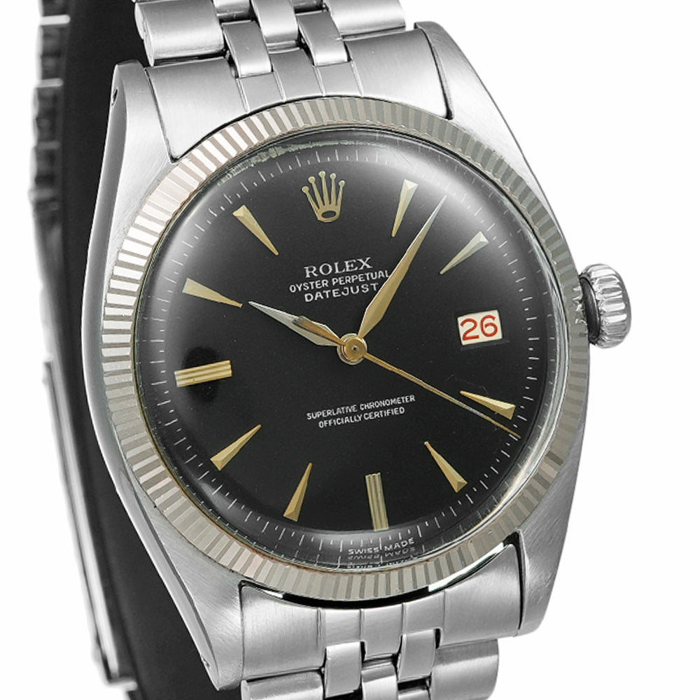 【ヴィンテージ/アンティーク品】 ダイヤルはリダン(修復)されております。 デイトジャストの第3世代にあたるモデルです。 デベソバックルのジュビリーブレスレットが装着されており、ブレスレットは1969年製造の為、後年の物となります。 リダンされておりますが、良い雰囲気を保っており、サイクロップスレンズもないのでデイトジャストの中でも他との違いを出しやすい品となります。 日差:±60秒以内(※商品掲載時点でのタイムグラファーを用いた計測値です。) 純正パーツが入手困難な場合は、修理に必要なパーツを製作もしくは加工をして行う場合がございます。 詳細は在庫店舗までお問い合わせ下さい。 アンティーク/ヴィンテージ品の為、風防はプラスチックとなります。 ブレスレットの内径は最大約19.5cmです。
