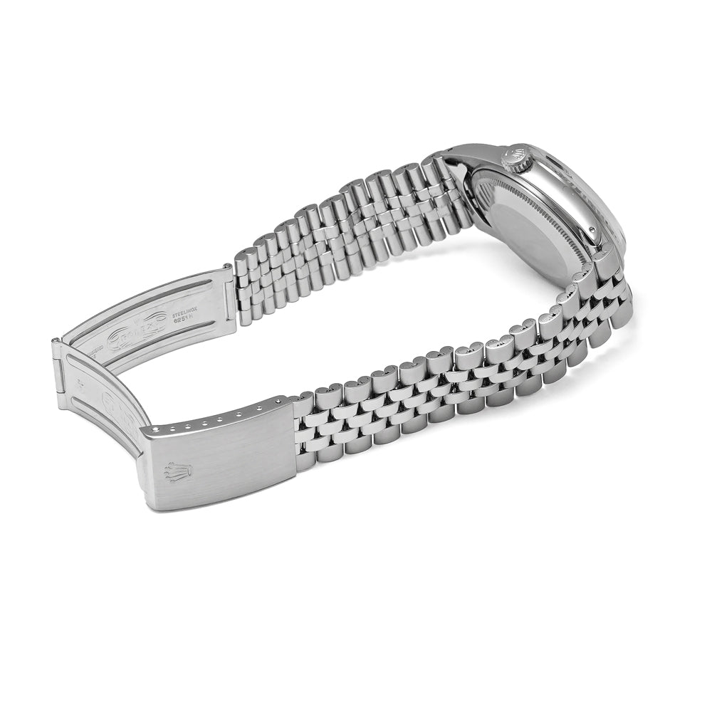 【ヴィンテージ/アンティーク品】 ダイヤルはオリジナルです。 ブラックダイヤルに赤い粒子が散りばめられた、通称「レッドアイ」として親しまれています。 通常の黒文字盤よりも流通量が少ない非常に貴重な逸品です。 純正の巻きジュビリーブレスレットはヨレも少なく締まった感じで、ラグのエッジもしっかり残っており良好なコンディションを維持しています。 日差:±60秒以内(※商品掲載時点でのタイムグラファーを用いた計測値です。) 純正パーツが入手困難な場合は、修理に必要なパーツを製作もしくは加工をして行う場合がございます。 詳細は在庫店舗までお問い合わせ下さい。 アンティーク/ヴィンテージ品の為、風防はプラスチックとなります。 ブレスレットの内径は最大約18cmです。