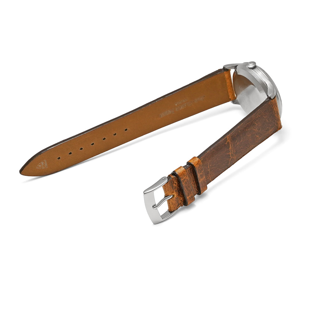 【ヴィンテージ/アンティーク品】 ダイヤルはオリジナルです。 日差:±60秒以内(※商品掲載時点でのタイムグラファーを用いた計測値です。) 純正パーツが入手困難な場合は、修理に必要なパーツを製作もしくは加工をして行う場合がございます。 詳細は在庫店舗までお問い合わせ下さい。 アンティーク/ヴィンテージ品の為、風防はプラスチックとなります。 革ベルトは弊社入荷後に社外製の新品へと交換済みです。 尾錠も社外製です。