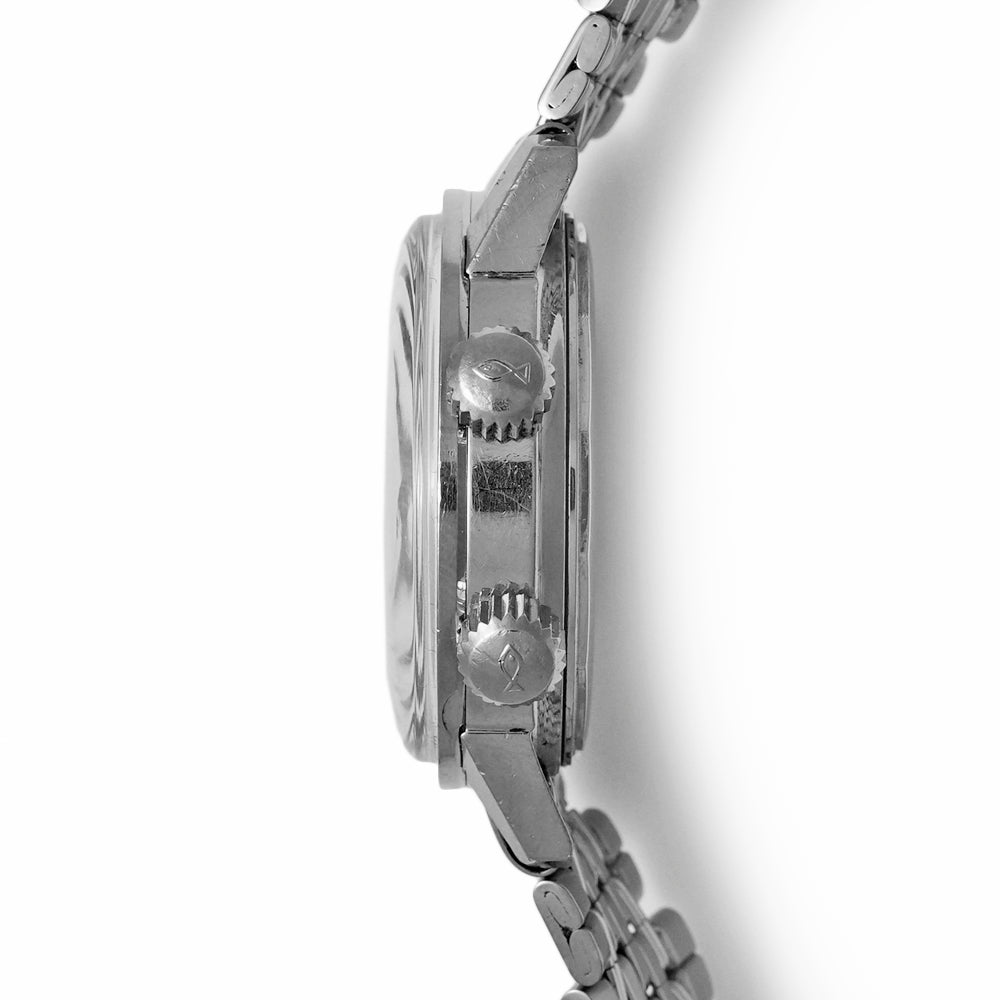 【ヴィンテージ/アンティーク品】 インナーベゼルに一部夜光落ちがございます。ダイヤルはオリジナルです。 Cal.8541(デイト付き)仕様を搭載したアクアタイマーファーストモデルの後期仕様です。 ファーストモデルは生産期間が2~3年ほどしか生産されておらず、デイト無しの前期とデイトありの後期に分かれる為、それぞれ1年ちょっとしか生産がされなかった非常にレア物となります。 本個体は1967年後期のゲイフレア社製ブレスレットが装着されおり、年式も一致するオリジナル性の高いお品となります。 日差:±60秒以内(※商品掲載時点でのタイムグラファーを用いた計測値です。) 純正パーツが入手困難な場合は、修理に必要なパーツを製作もしくは加工をして行う場合がございます。 詳細は在庫店舗までお問い合わせ下さい。 アンティーク/ヴィンテージ品の為、風防はプラスチックとなります。 ブレスレットの内径は最大約17cmです。