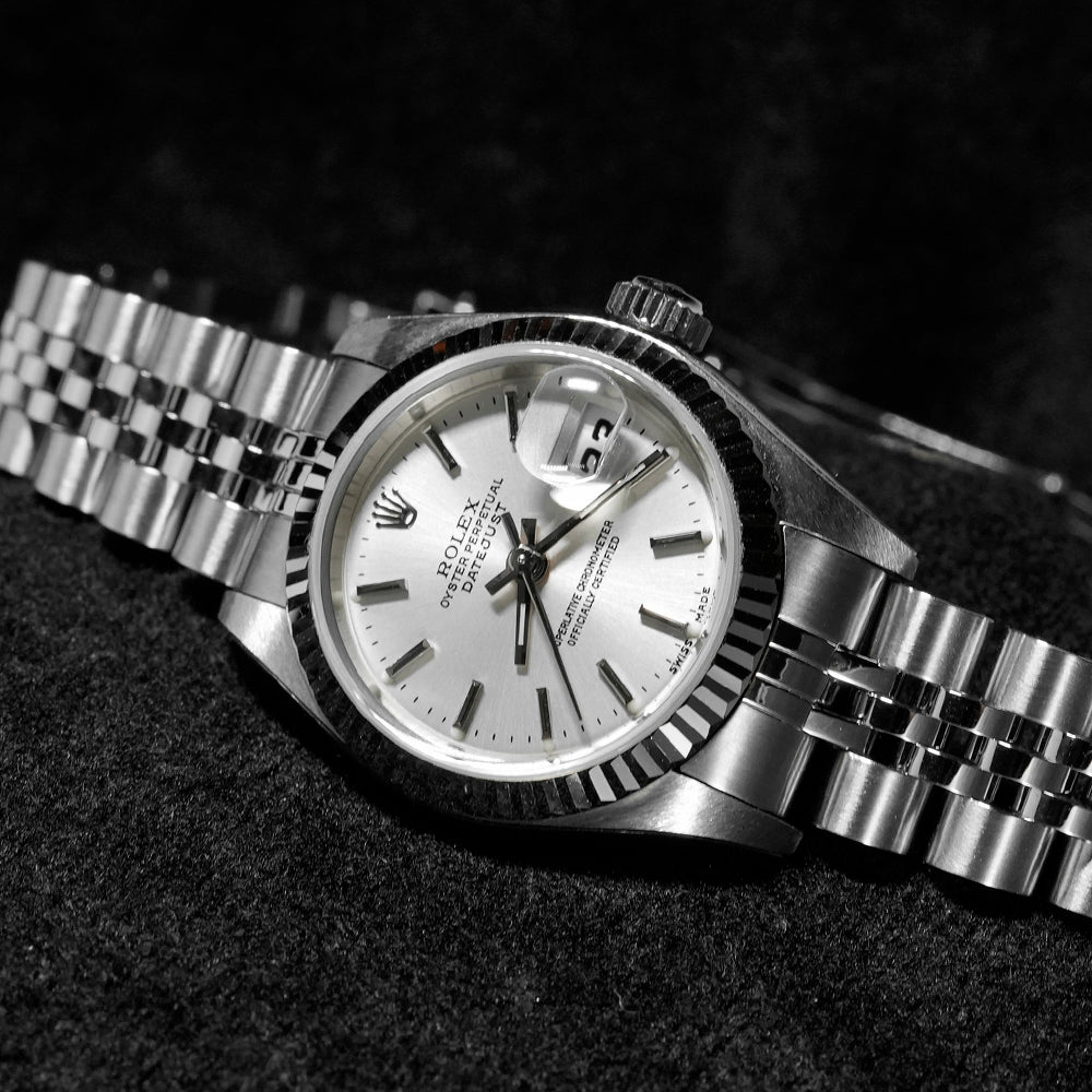 【USED美品】 全体的に目立つような傷は無く、USED品としては大変綺麗な状態です。 オリジナルのフォルムを維持するため、弊社入荷後はあえて仕上げをかけておりません。 ガラスに傷はございません。 ※メーカーの保護テープが一部ついております。 ブレスレットの内径は最大約17.5cmです。(フルコマ)