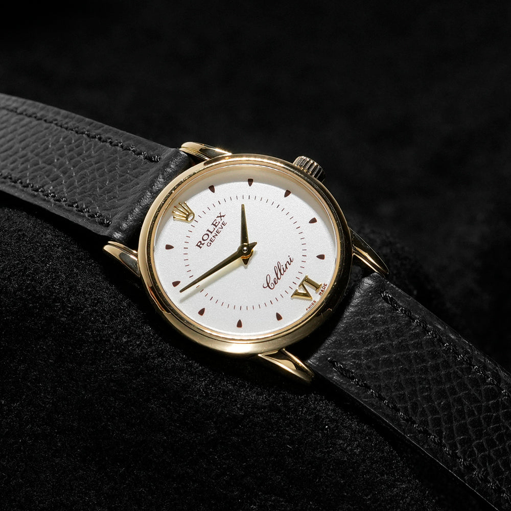 【USED品】 ベゼルに僅かな小傷がございます。 その他の部分は目立つような傷は無く、USED品としては綺麗な状態です。 ガラスに傷はございません。 革ベルトは弊社入荷後に社外製の新品へと交換済みです。
