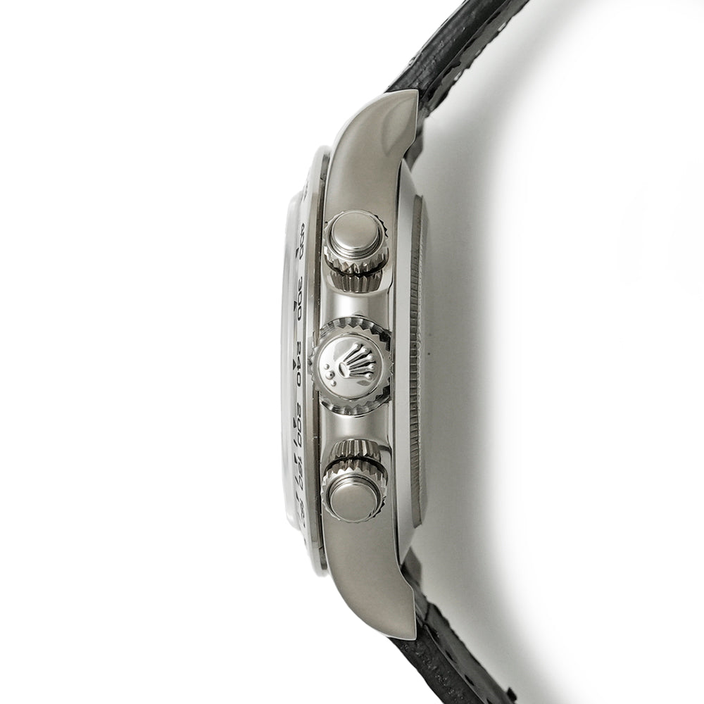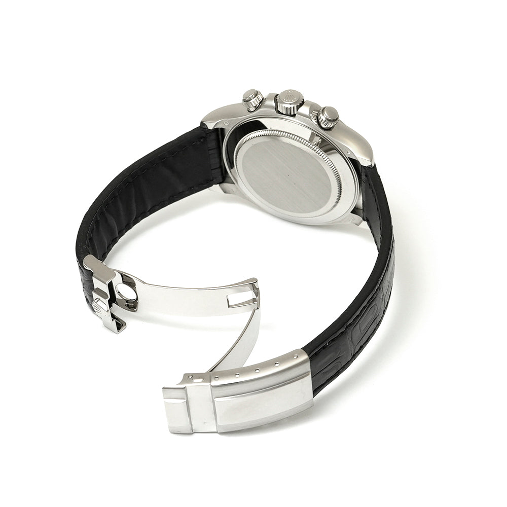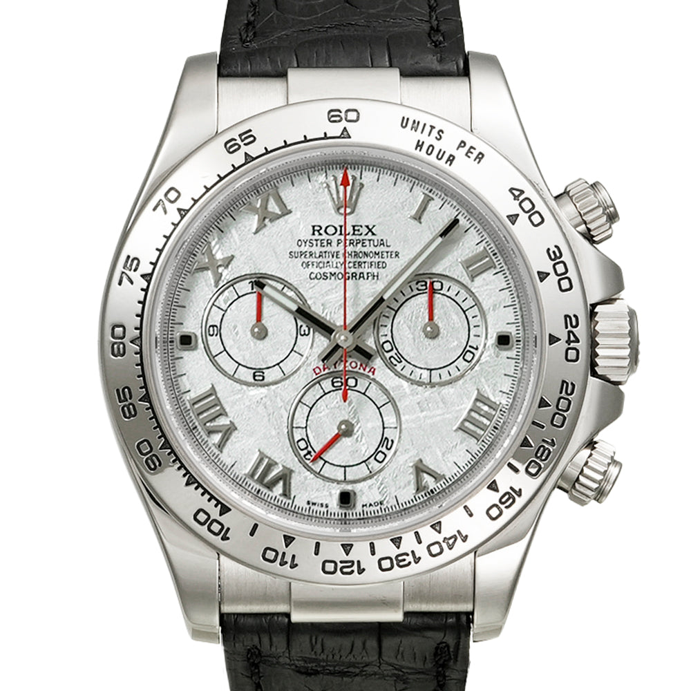 【USED品】 弊社にて外装仕上げを行っている為、 全体的に目立つような傷は無く、USED品としては綺麗な状態です。 ガラスに傷はございません。 ベルトは社外制未使用クロコベルトが装着されております。 クロコベルトの内径は最大約18.5cmです。