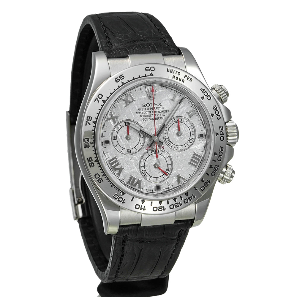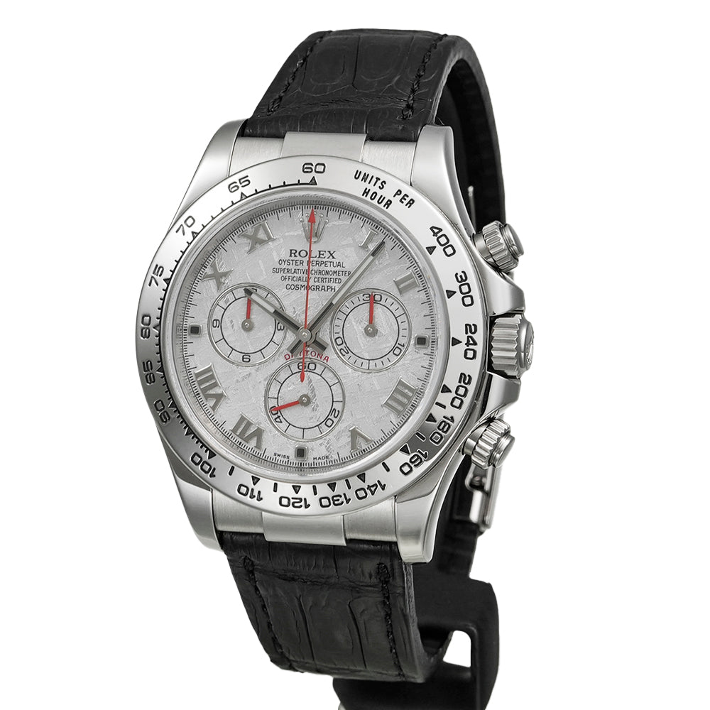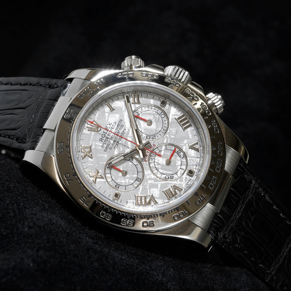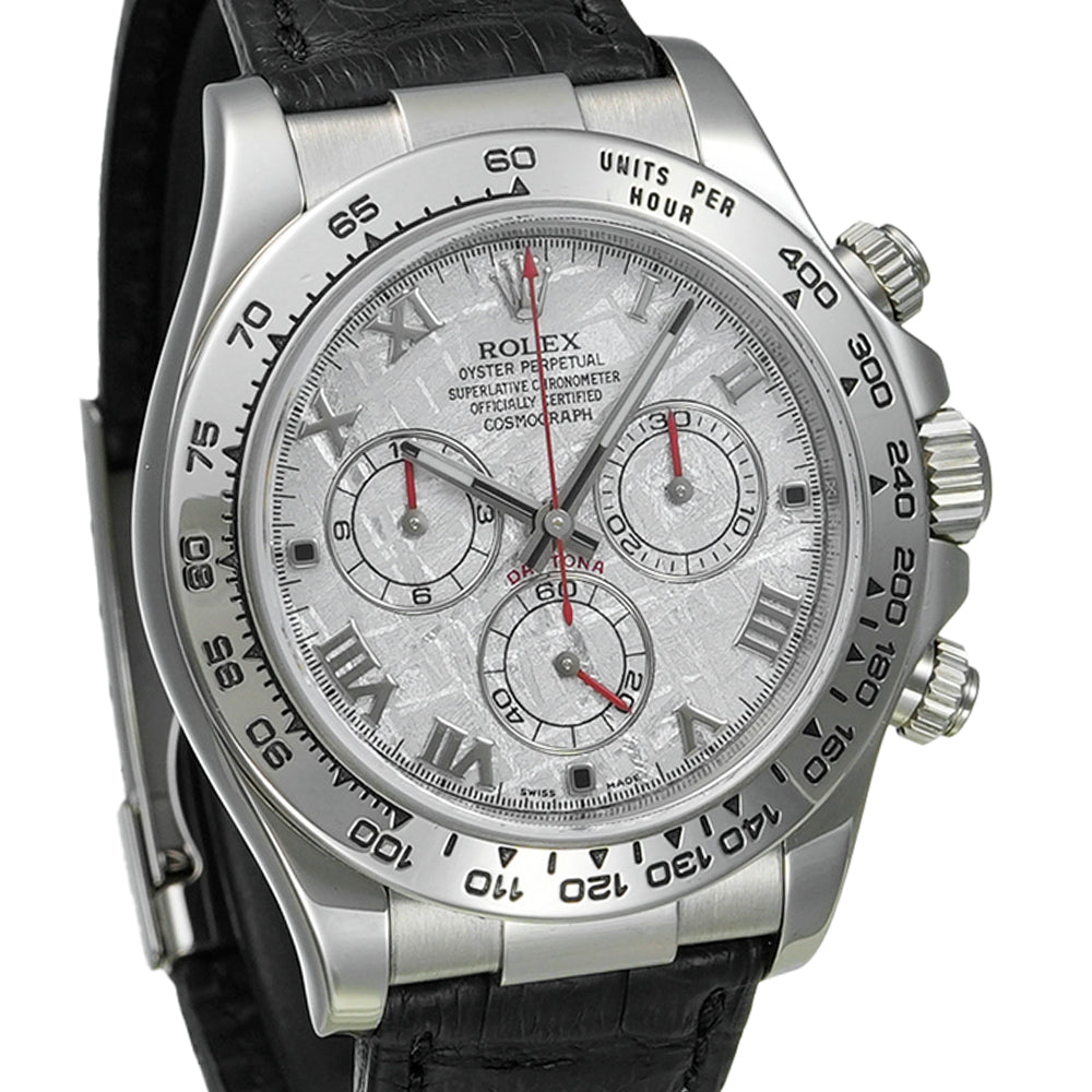 【USED品】 弊社にて外装仕上げを行っている為、 全体的に目立つような傷は無く、USED品としては綺麗な状態です。 ガラスに傷はございません。 ベルトは社外制未使用クロコベルトが装着されております。 クロコベルトの内径は最大約18.5cmです。