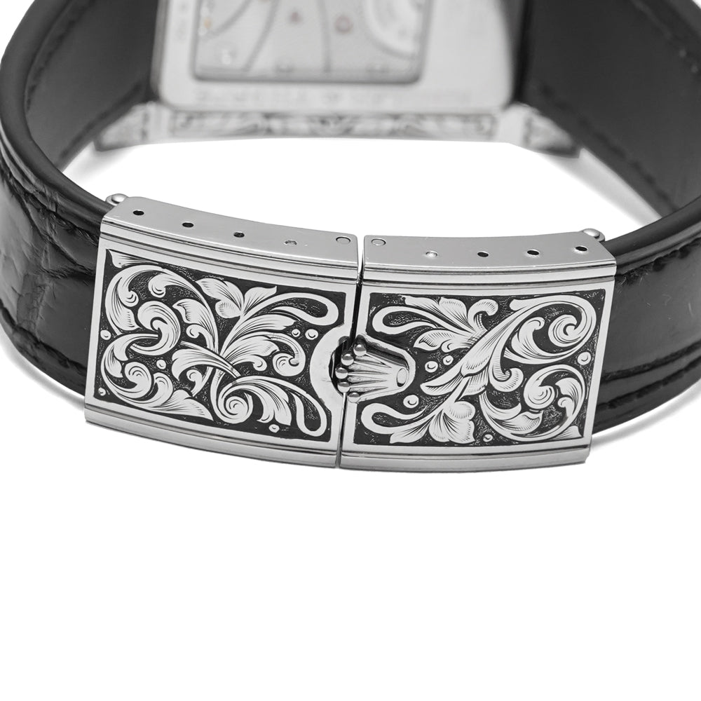 【USED品】 全体的に使用に伴う小傷はございますが、深い傷等はありませんので、USED品としては綺麗な状態です。 ガラスに傷はございません。 革ベルトは社外製の中古品ですが、綺麗な状態です。 約18cmから21cmまで対応可能です。