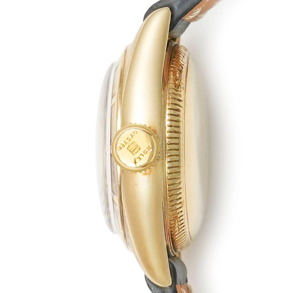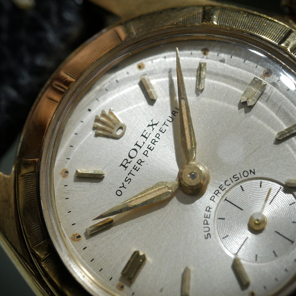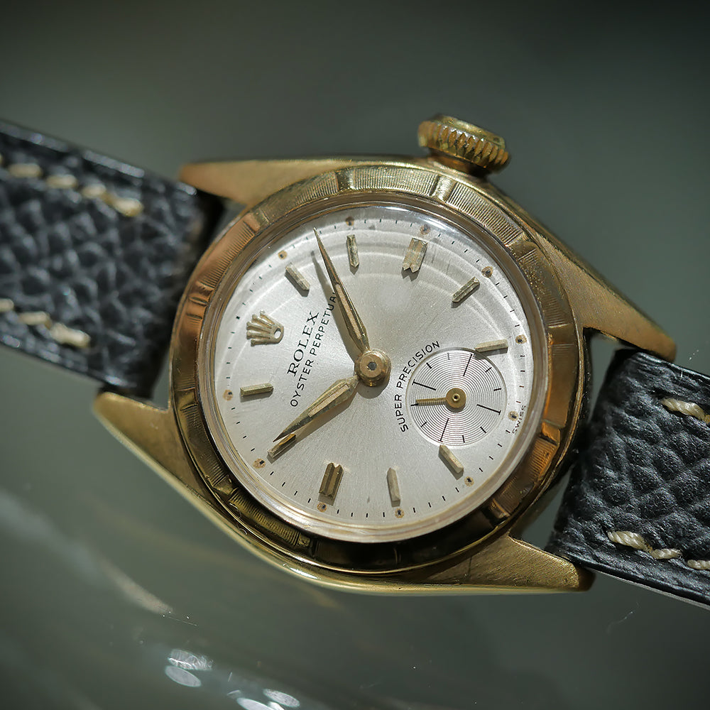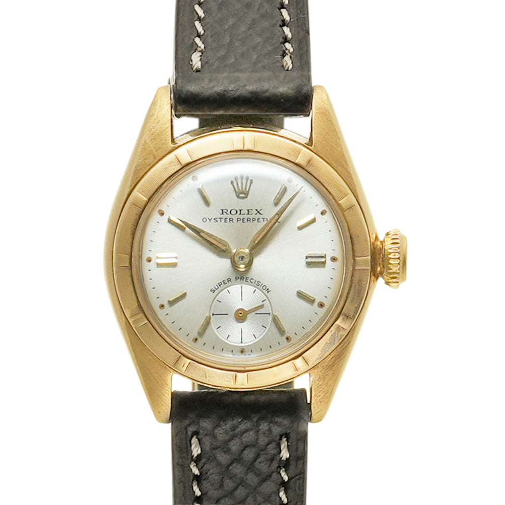 【ヴィンテージ/アンティーク品】 ダイヤルはオリジナルです。 非常に珍しいレディース向けのバブルバックです。 エンジンターンドベゼルにスモールセコンドの通好みな仕様です。 日差:±60秒以内(※商品掲載時点でのタイムグラファーを用いた計測値です。) 純正パーツが入手困難な場合は、修理に必要なパーツを製作もしくは加工をして行う場合がございます。 詳細は在庫店舗までお問い合わせ下さい。 アンティーク/ヴィンテージ品の為、風防はプラスチックとなります。 革ベルトは弊社入荷後に社外製の新品へと交換済みです。