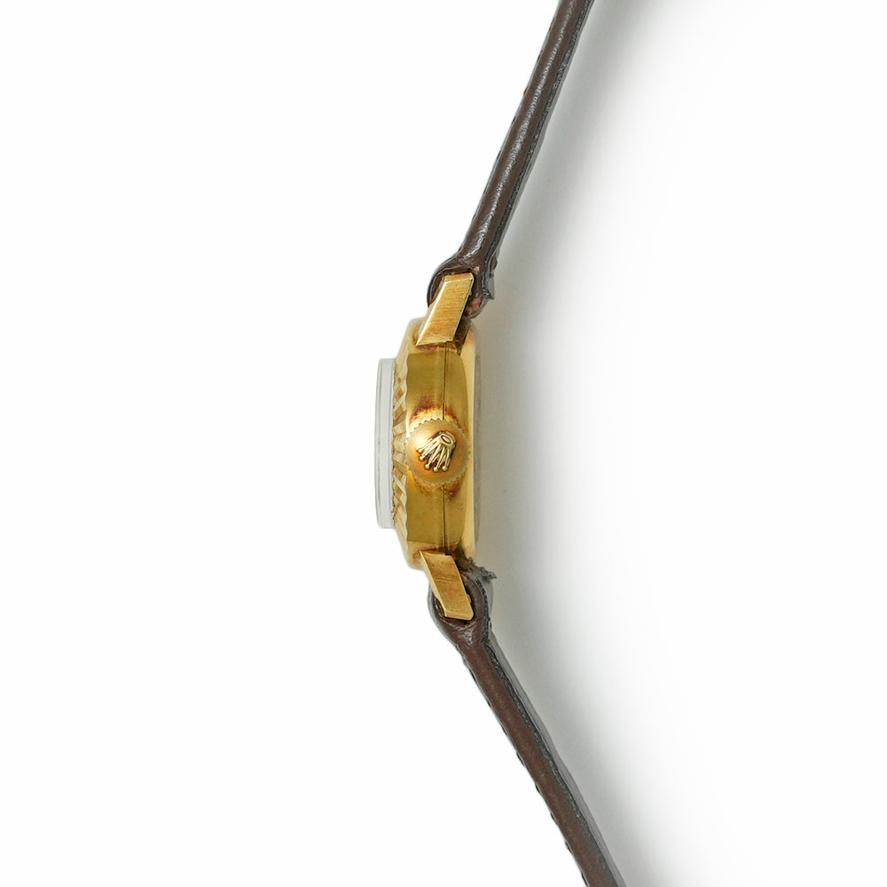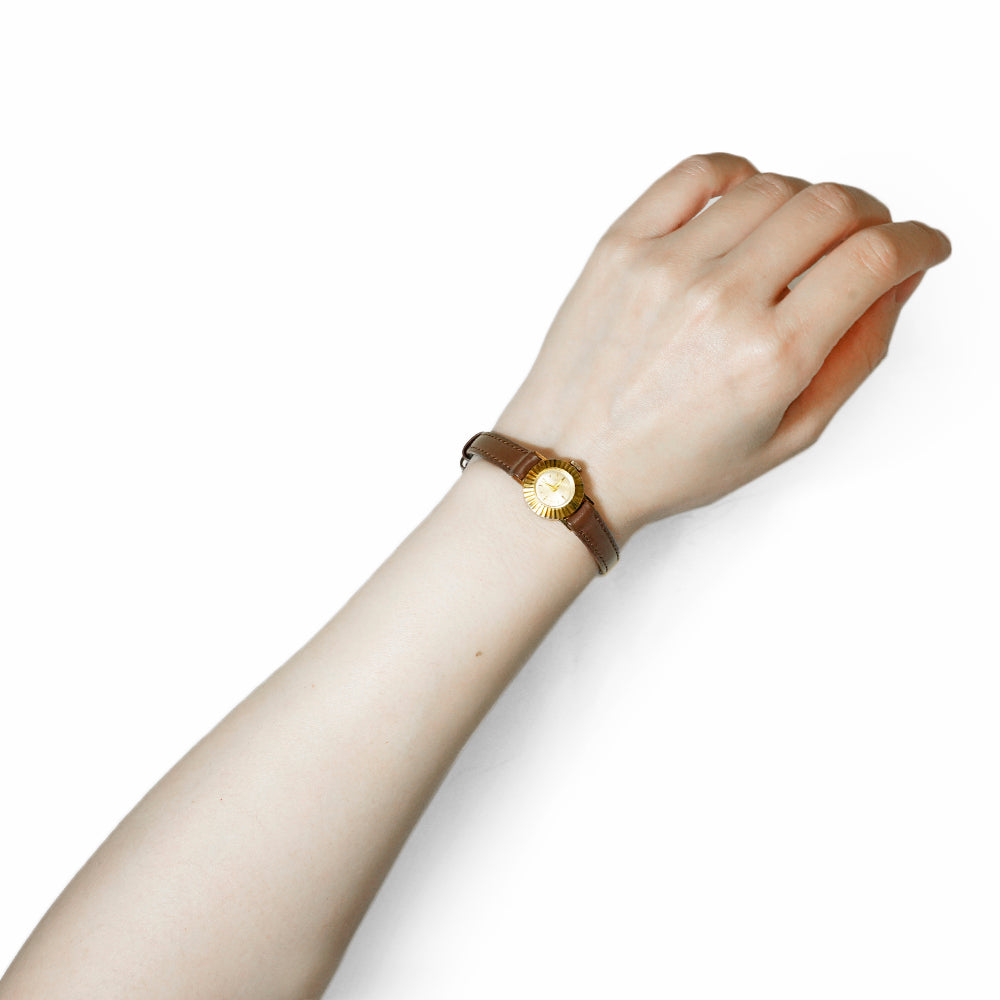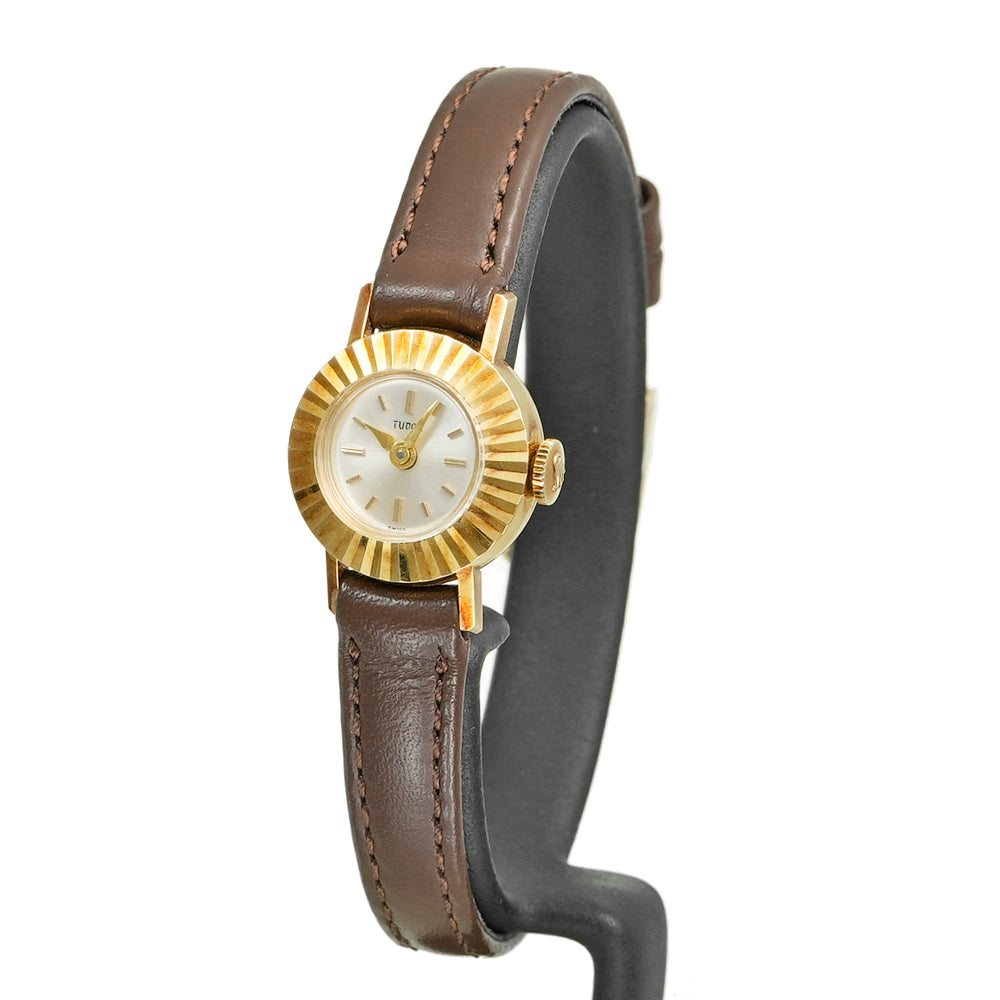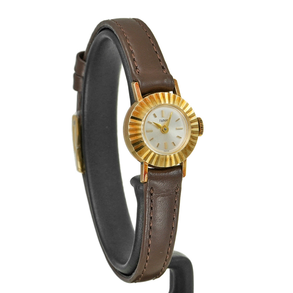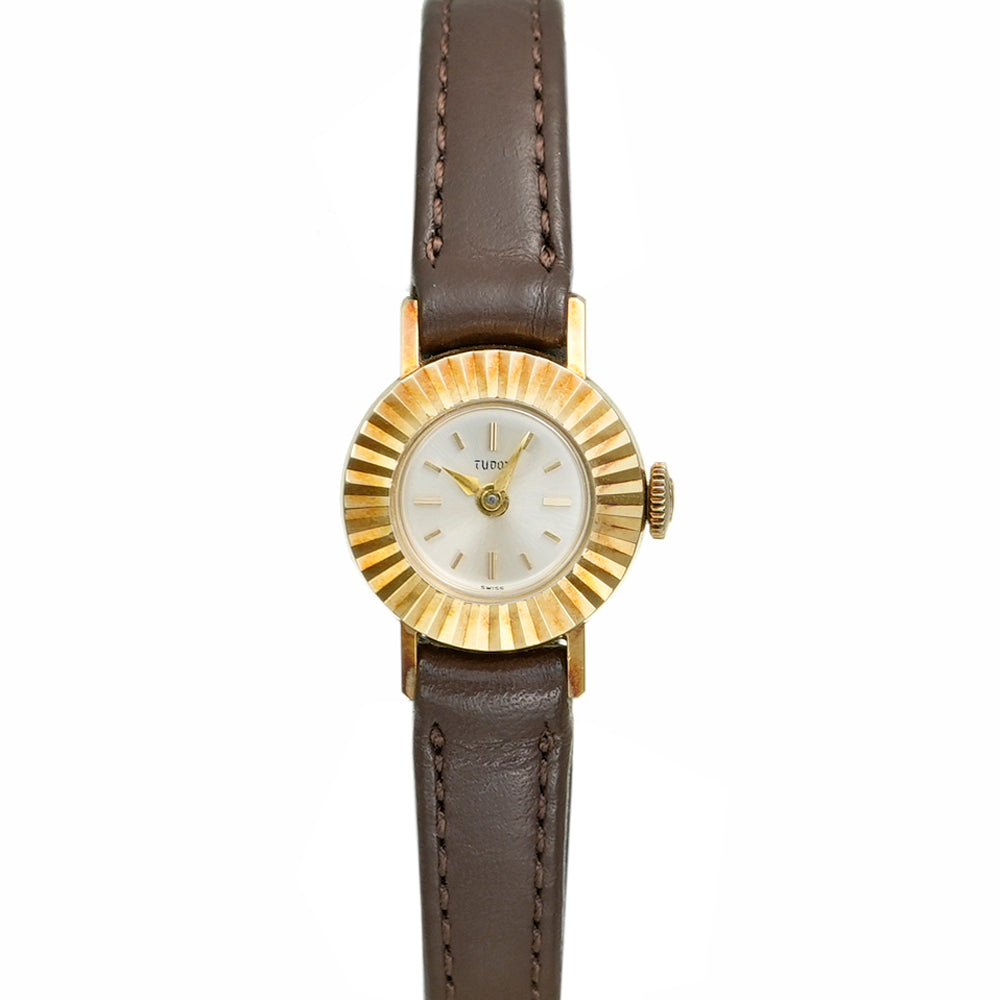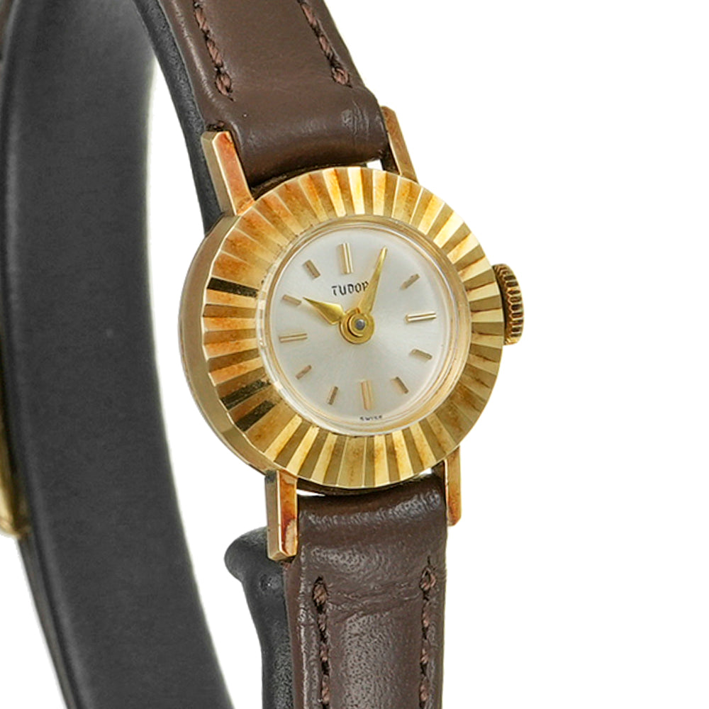 【ヴィンテージ/アンティーク品】 ダイヤルはオリジナルです。 フルーテッドベゼル仕様かつカメレオン風のケースのアンティーク時計です。 ベルトがバネ棒仕様ですので、カメレオンと違い専用ベルトを用意する必要はありません。 当時としては非常に珍しいチューダーでのK18イエローゴールドのケースで、ロレックスのディフュージョンブランドではあるものの1950年代ではかなりの上流階級向けの商品だった事を思わせます。 通常のカメレオンよりも日常使いをしやすいデザインとなりますので、腕元をさりげなくも華やかにしてくれる逸品です。 日差:±60秒以内(※商品掲載時点でのタイムグラファーを用いた計測値です。) 純正パーツが入手困難な場合は、修理に必要なパーツを製作もしくは加工をして行う場合がございます。 詳細は在庫店舗までお問い合わせ下さい。 アンティーク/ヴィンテージ品の為、風防はプラスチックとなります。 革ベルトは弊社入荷後に社外製の新品へと交換済みです。