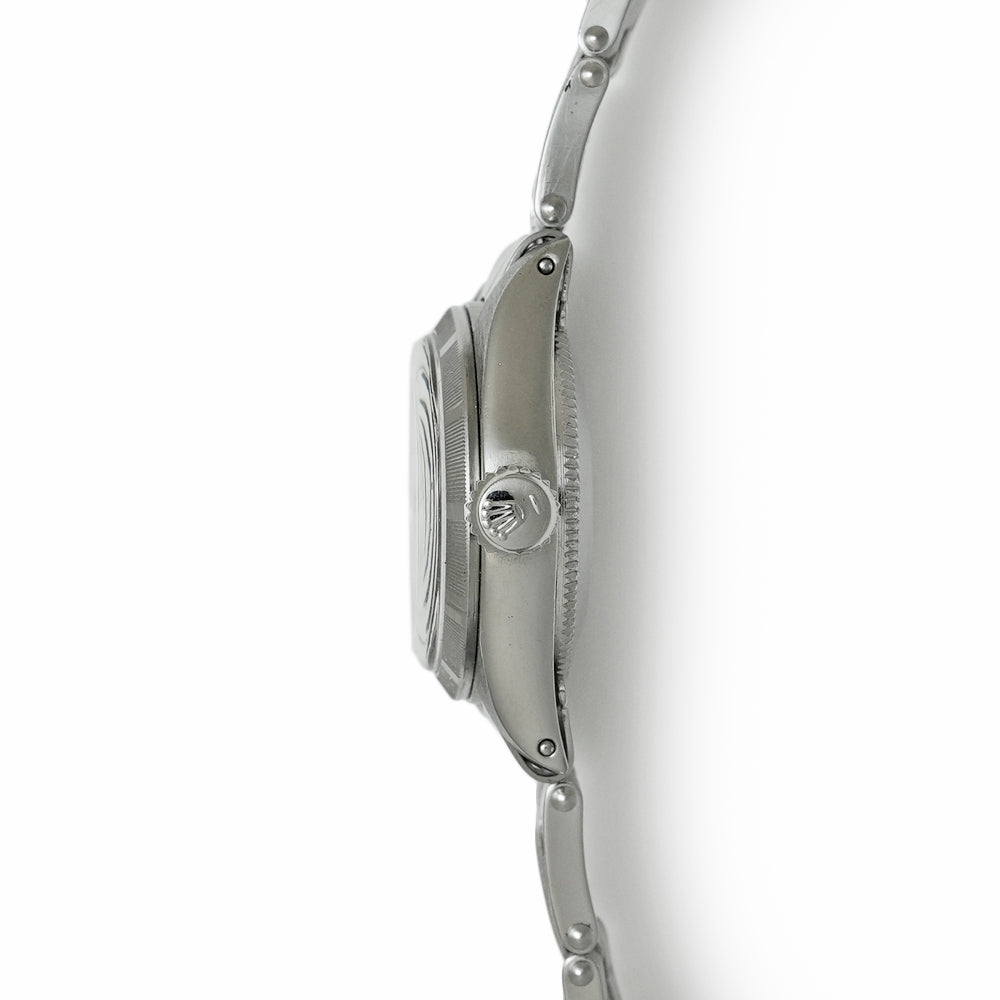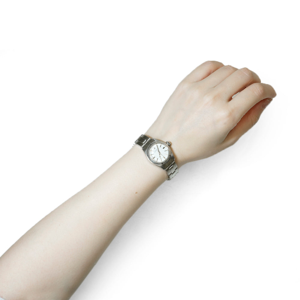 【ヴィンテージ/アンティーク品】 ダイヤルはオリジナルです。 わずかにクリームがかったスノーホワイトダイヤルが柔らかく光をまとい、上品な存在感を放つRef.6623。 スノーホワイトの質感は見る角度で表情を変え、シンプルながら深い魅力を宿します。 現行にはない味わい深さをもつエンジンターンドベゼルが、クラシック感とほどよいカジュアルさを両立。 控えめで主張しすぎない佇まいは、「上質なものをさりげなく楽しみたい女性」にぴったりです。 25mmの小径ケースとオールトリチウムの風合いが、日常にそっとヴィンテージの美しさを添えてくれます。 日差:±60秒以内(※商品掲載時点でのタイムグラファーを用いた計測値です。) 純正パーツが入手困難な場合は、修理に必要なパーツを製作もしくは加工をして行う場合がございます。 詳細は在庫店舗までお問い合わせ下さい。 アンティーク/ヴィンテージ品の為、風防はプラスチックとなります。 ブレスレットの内径は最大約16.5cmです。
