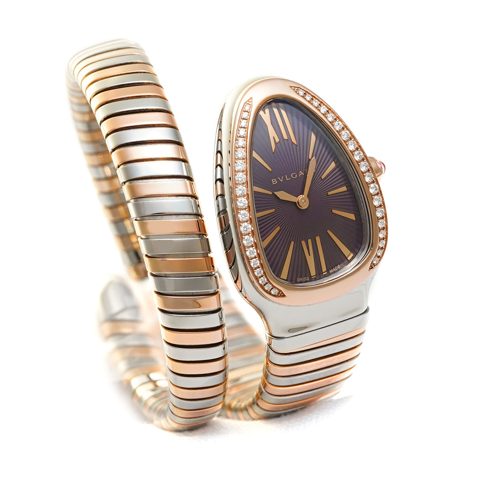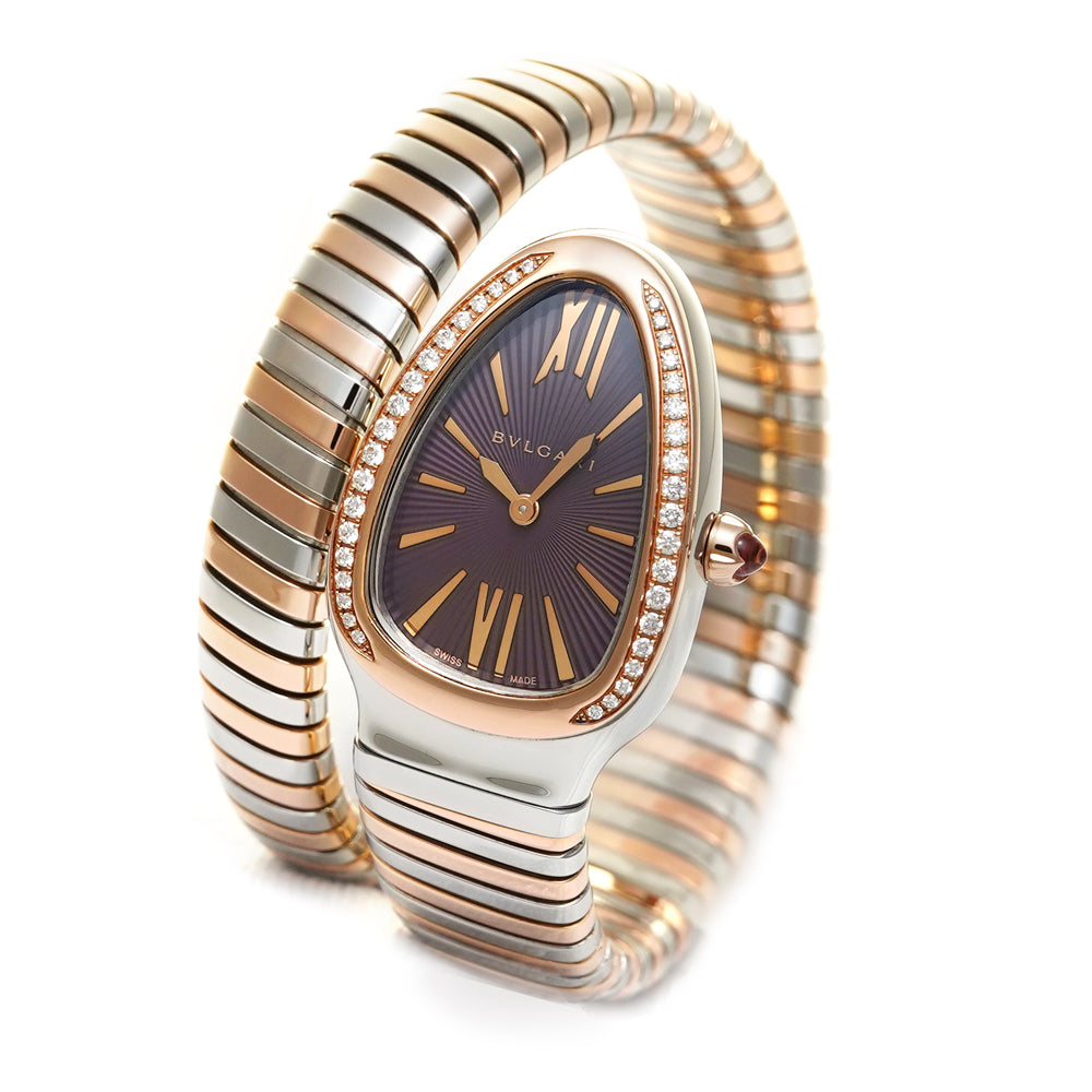 【国内正規USED品】 国内の正規店にて販売された個体です。 弊社にて外装仕上げを行っている為、 全体的に目立つような傷は無く、USED品としては綺麗な状態です。 ステンレススチールとピンクゴールドのコンビネーションが、手元に華やかな輝きを添えます。 ヴァイオレットの文字盤とベゼルにあしらわれたダイヤモンドが、エレガントな印象を際立たせています。 縦31mm×横23mmのケースサイズは、女性の手首にしなやかにフィットし、日常生活防水機能を備えておりますので、デイリー使いにも適しています。 2020年12月に国内正規店で購入された個体で、外箱、内箱、国内正規保証書などの付属品が揃っております。 中古としては高年式な個体です。 ガラスに傷はございません。