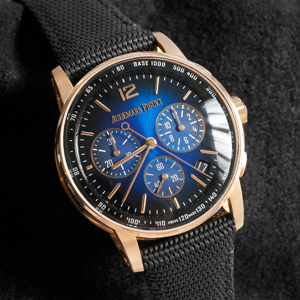 CODE 11.59 バイ オーデマ ピゲ クロノグラフ ブルー×ブラックグラデーション 箱・保証書付き Ref.26393OR.OO.A002KB.03 中古品